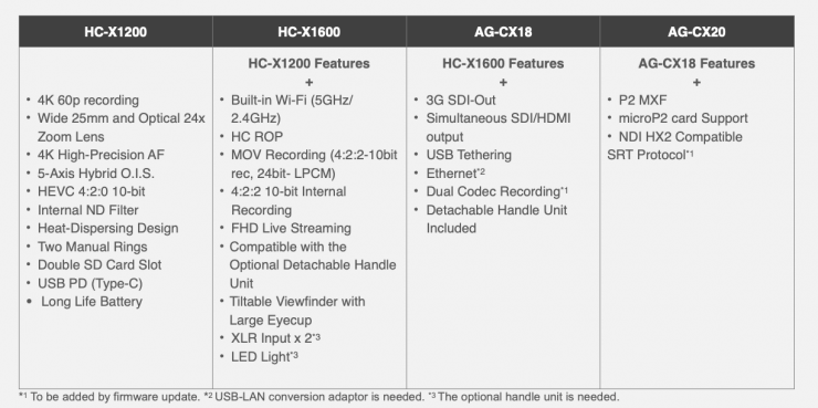 Ένα συμπαγές σώμα με ευρυγώνιο φακό 25mm*, οπτικό zoom 24x, αυτόματη εστίαση υψηλής ακρίβειας 4K και άλλα χαρακτηριστικά για την υποστήριξη όλων των φορμά παραγωγής βίντεο. (* ισοδύναμο φωτογραφικής μηχανής 35mm)