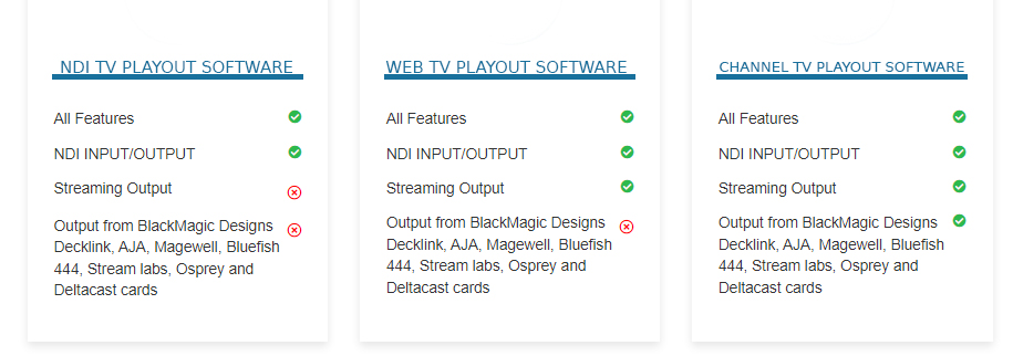 Η διαφορά του WEB TV PLAYOUT SOFTWARE (139€)και του CHANNELS PLAYOUT SOFTWARE (249€) έγκειται στο γεγονός ότι το CHANNEL μπορεί να κάνει και out σε capture card.